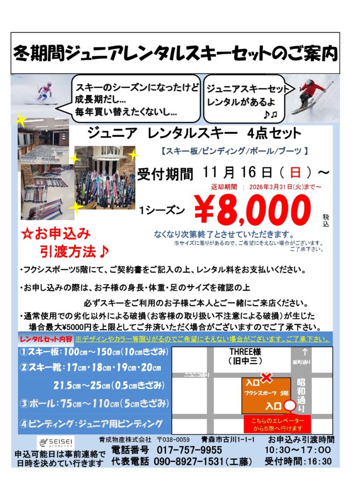 冬期間ジュニアレンタルスキーセットのご案内